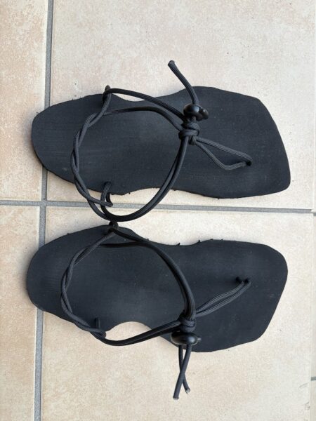 8月頃からランニングシューズを自作したワラーチ?マンサンダル?(下の写真)に変更しました。以前から気になっており試しに履いて走ってみると一気に気に入りました!ランニングシューズと違いクッションがないので足への負担は大きいのですがそこが心地いいです。